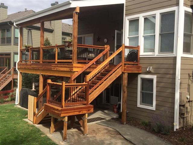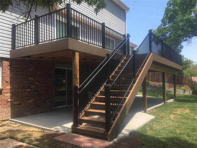 Nice well-engineered deck. I really like the metal railing system installed and the stairs are super-sturdy.