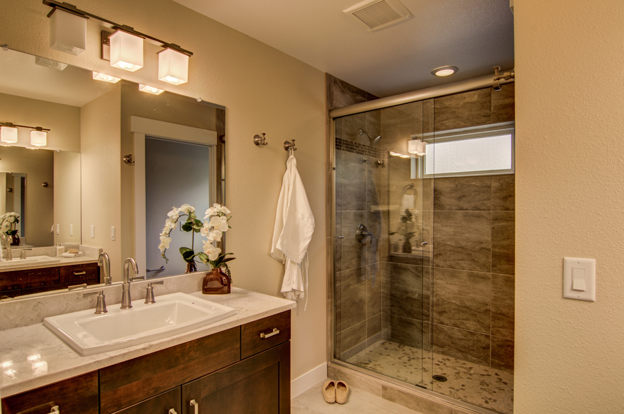 It couldn’t have been an easy task to draw up an estimate; there were a lot of unusual components, like adding a new septic line through a cement shop floor, adding a 4’ wide exterior door to accommodate things we might need down the road (lifts, EMS, etc), and a leveled zero-clearance walk-in shower in an existing room that was sloped per garage permit specifications. Despite that, the end result is remarkable, and we ended up almost exactly on budget and schedule.