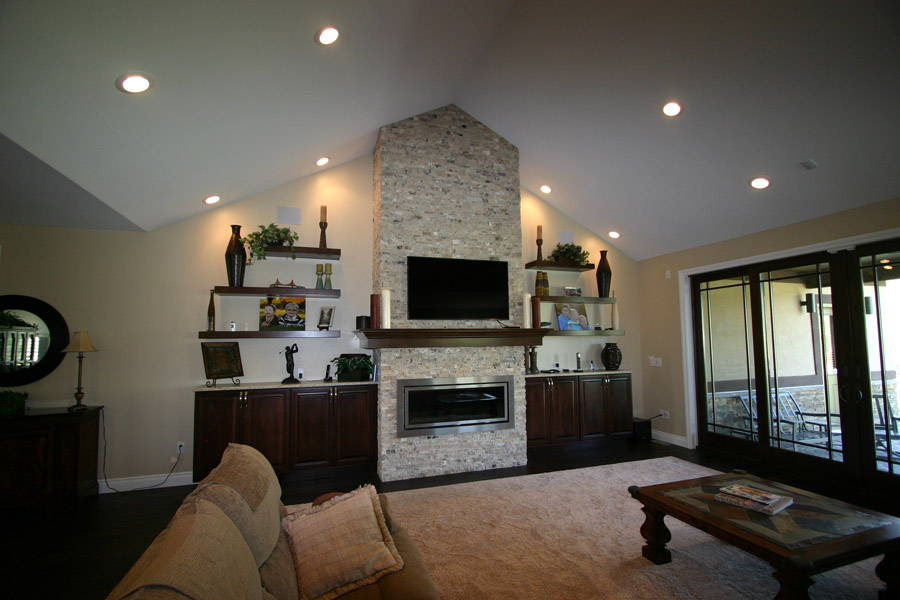 Home Improvement Express remodeled my family room to remove an alcove above a fireplace to make an accent wall and mounted the TV.