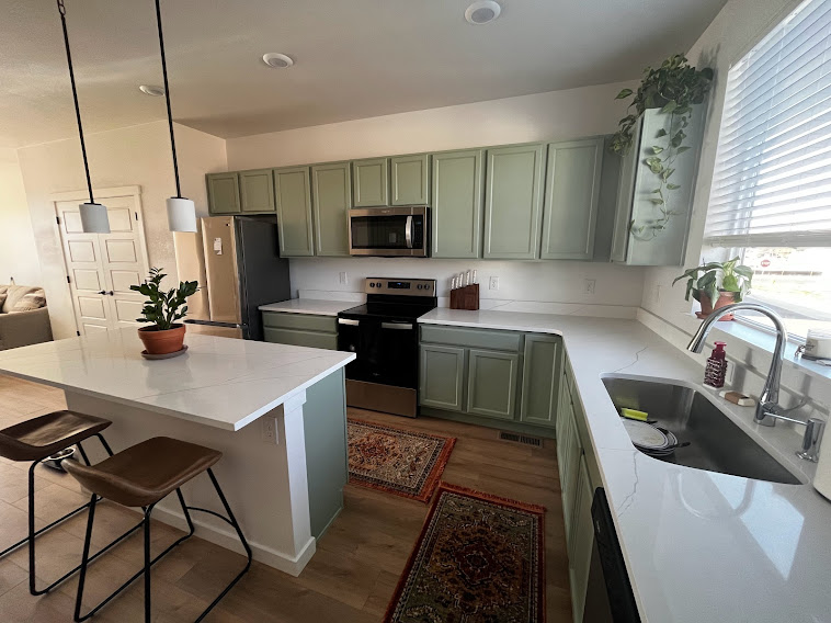 I hired Paint Denver to paint my kitchen cabinets and they are amazing! Best decision I have made with hiring contractors since purchasing our first home. Everyone who sees them comments how great they look and truly they look brand new.