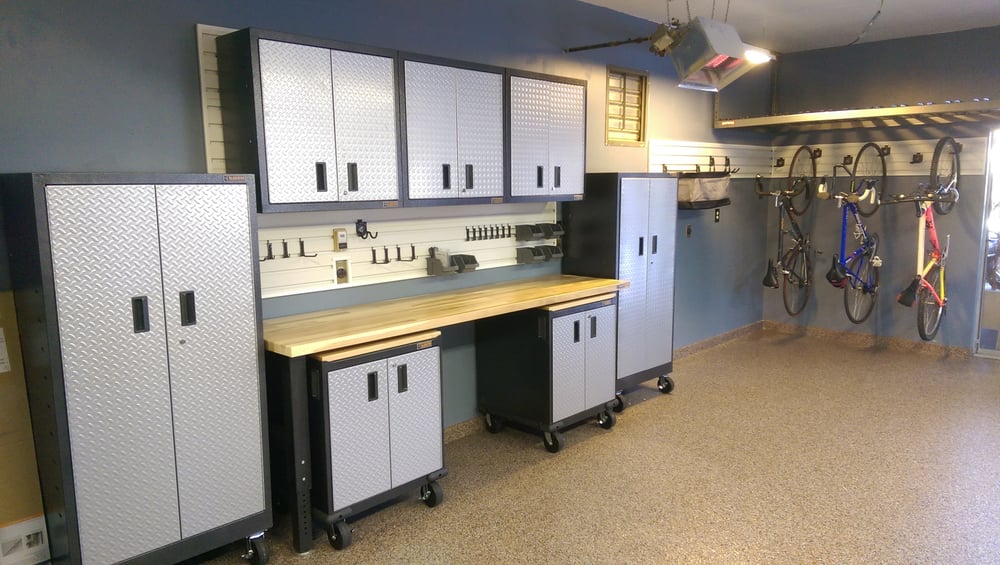 Very happy with my Gladiator Garage. Very happy with Garage Gurus. Product is fantastic. Service was awesome. Chad put in shelving, an overhead rack, a workbench, cabinets, a bike rack holder, and extra track systems. The process with Chad was smooth and professional…no surprises.