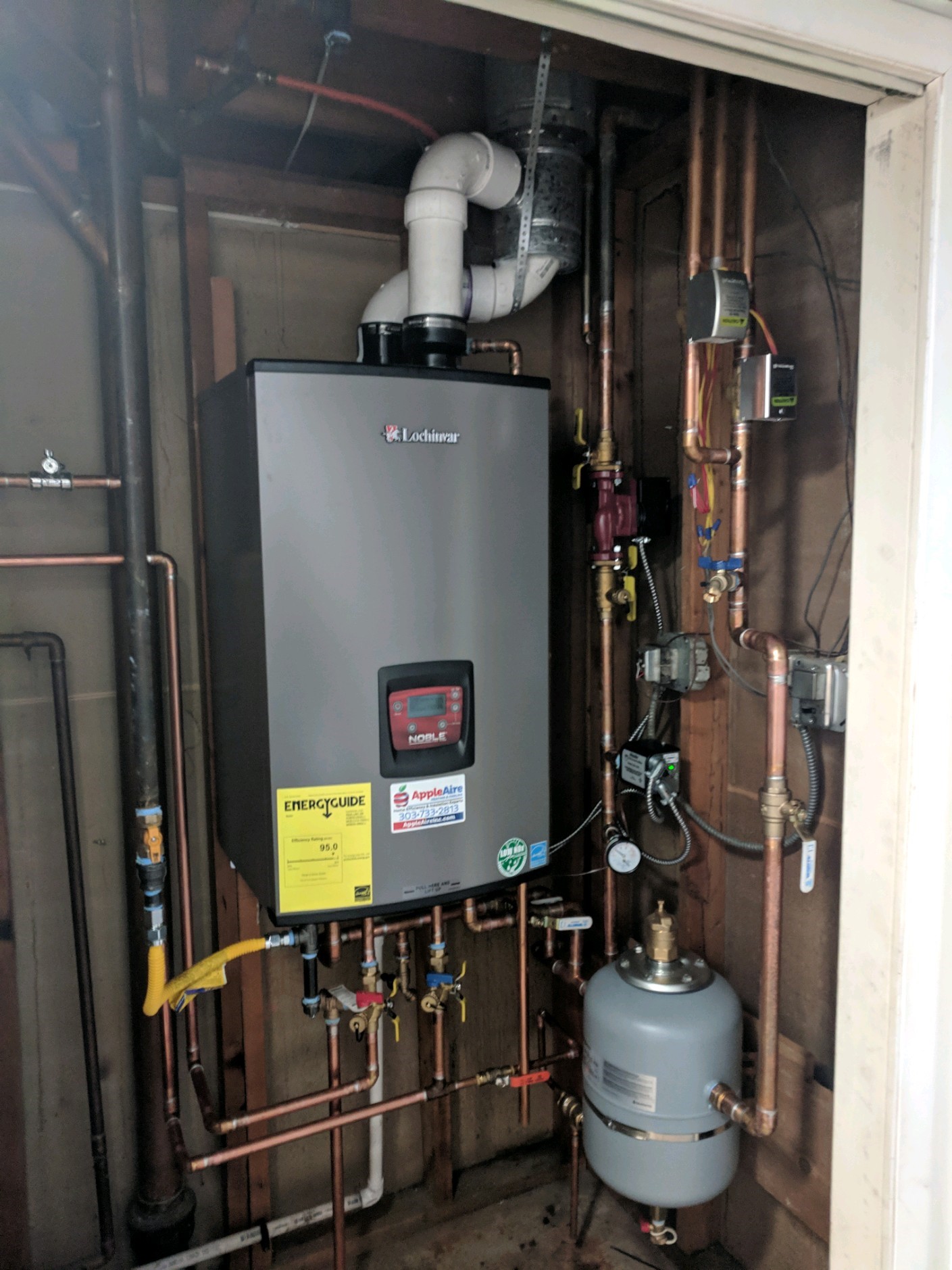 My Carbon Monoxide alarm started going off on Thursday and I called Apple Aire right away. They were very friendly on the phone and Todd was up to our house in Conifer within 3 hrs. Our 45 year old boiler was done and Todd helped us choose a new boiler to replace it. He was very knowledgeable and walked us through everything. They had to rearrange their schedule in order to put our new boiler in the very next day. Matt and Shane were here the next day right when they were supposed to be here and they worked all day with Todd to make sure it got finished that day. They did a great job and were super friendly throughout the entire process. We couldn't be happier with our experience with this company and definitely recommend them.
