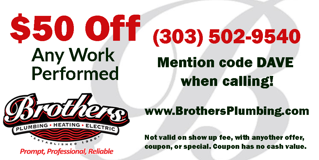 Brothers Plumbing, Heating & Electric was founded in 1980 as a family company. Brothers is the leader in plumbing, heating, electrical, drain cleaning, excavation, and sprinklers. They will respect your time by scheduling 2 hour appointment windows, 7 days a week with no overtime charges. They won the Better Business Bureau Torch Award twice, Consumer Choice Award, Best of Mile High Award, and Denver Post Top Workplaces Award among many others.
