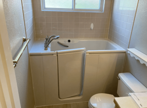 We are very pleased because the new tub has molded arm rests and uses less water to fill, because of the interior molded design. The work was completed within 5 hours, and without damaging any of the wall tiles that are no longer available through the manufacturer.