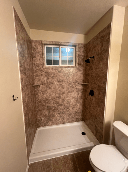 We replaced our tile shower with LuxStone/ Home Pride and it looks fantastic! The project required removal of short walls at both ends of the old door to allow installation of a full width glass enclosure and door (not yet installed in photo). Christopher and Sonya did a great job on the studs and drywall re-work, topped off by a beautiful and professional LuxStone installation. They made sure everything is the way we wanted, cleaned up every day, and left no trace of the construction in our house. They were a pleasure to work with.