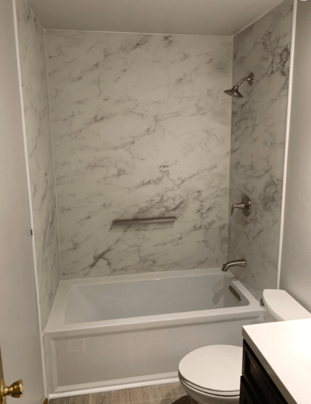 Our install team from LuxStone, Ivan and Yury, were top notch professional craftsman in all respects. They worked diligently with a challenging project installing a completely new bathroom consisting of a LuxStone shower conversion, new vanity, sink, commode and flooring in the main bathroom and new flooring in 2 other bathrooms.